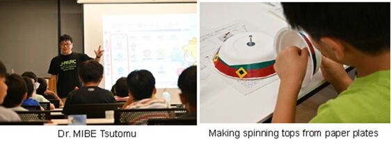 As part of the J-PARC Hello Science Summer Science Experiment Workshop, we offered activities such as “Tilted but Won’t Fall! The Mystery of Spinning Tops,” “Let’s make accessories with hadrons,” “Transforming Water – Let’s observe Snow Crystals.” and the team Getapon(Nobu-chan Sensei & Dr. KAMIYA) presents: “What is Air and Vacuum? Part II”.