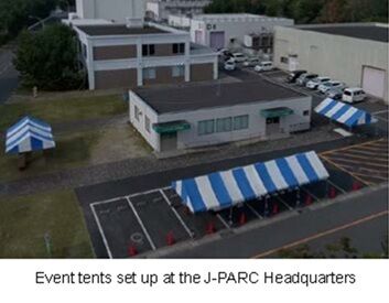 Since January, our Open House Committee has worked tirelessly-revising plans, fine-tuning details, and preparing for tomorrow’s big event. The tents are already in place, with tables and chairs stacked neatly inside, awaiting assembly in the morning. Inside the J-PARC Research Building, exhibits on the second and third floors rest under the soft glow of lights streaming from the atrium above. Imagining these spaces bustling with visitors tomorrow makes tonight’s calm feel even more profound.