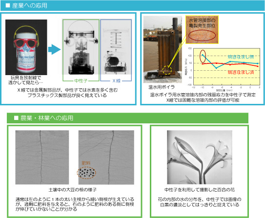 X線や中性子などを用いる放射線ラジオグラフィーは、検査対象物を透視して非破壊で内部情報を得る技術として工業をはじめ幅広い分野で利用されている。X線は金属などの重元素の観察に優れているが、中性子はX線と比較して水素や炭素などの軽元素の検出や観察に適しているため、相互の利点を使い分けることで、検査対象物の更に詳細な観察が可能になる。