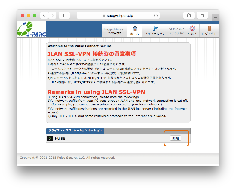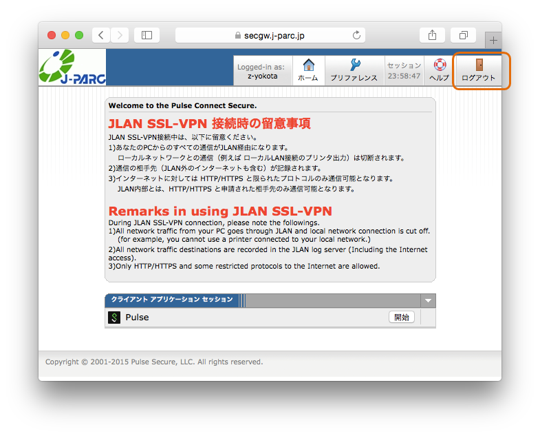 また、Pulse Secure Clientは自動終了しません。メニューより終了してください。