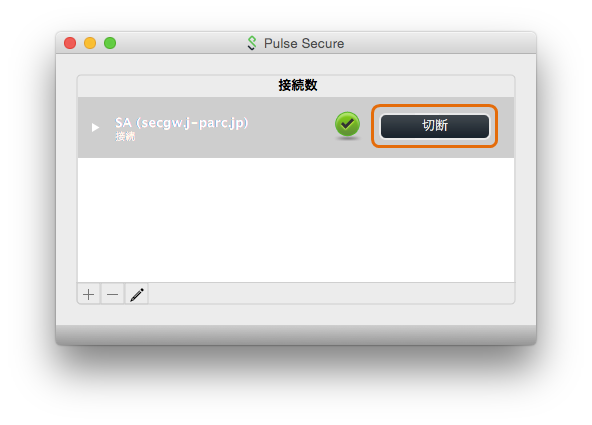 Pulse Secure Client画面の [切断] をクリックしてください。