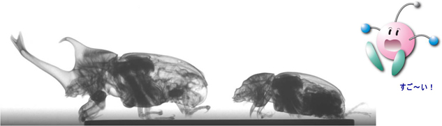 写真は中性子を利用して写したカブトムシです。内臓まで見えています! 内蔵は水分を多く含んでいるので、X線を利用したレントゲン写真よりも、よく見ることができるのです。