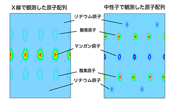 軽い原子は電子が少ないので、X線よりも中性子を利用した方が、よく観察できます。