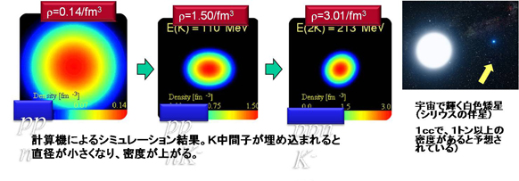 陽子(p)−陽子(p)−中性子(n)から構成されている原子核に、K中間子を埋め込むと、その直径が縮むのではないか? と予想されています。