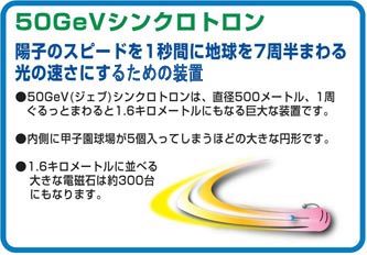 50GeVシンクロトロンで、陽子のスピードは、光の速さの99.98%位まで加速されます。