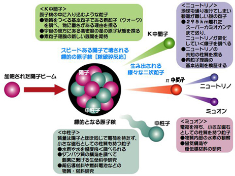 数多くの中性子や中間子を生み出すためには、次々と原子核を壊します。そのために、数多くの陽子(大強度陽子)が必要です。
