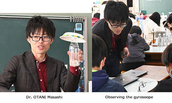 Dr. OTANI Masashi of the Accelerator Section Ⅶ was the lecturer on the topic 'How to make a strange top that leans but doesn't fall over?‘ to about 80 children from two 6th grade classes at Ichige Elementary School.