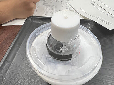 On the day of the event, participants observed dissected dried sardines and ice crystals carefully using magnifying glasses, under the slogan, "The first step in research is to observe closely with your own eyes."