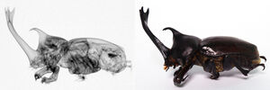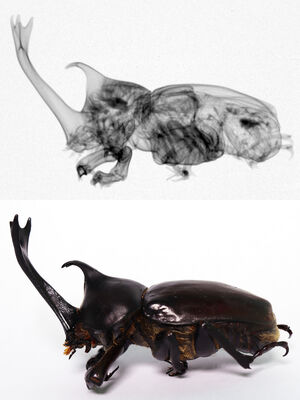 | 画像タイトル | 螺鈿で撮影されたカブトムシの中性子ラジオグラフィと現物のカブトムシの写真 (2)【3-047】 |