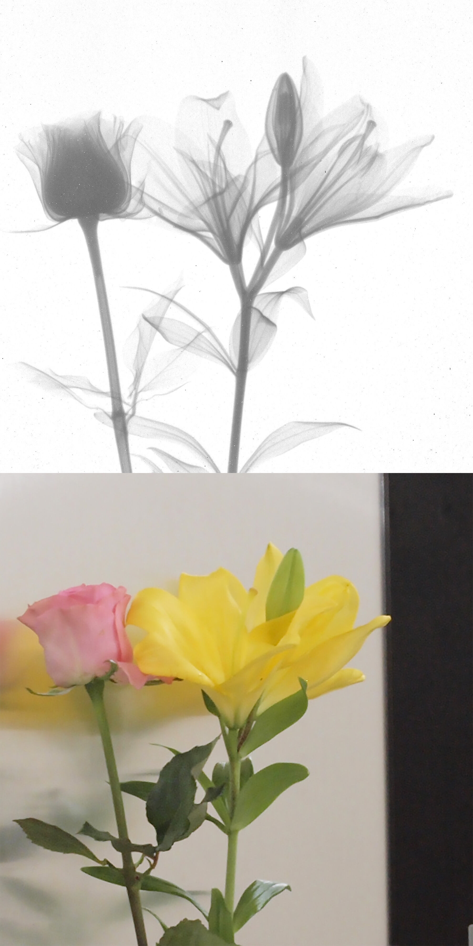 | 画像タイトル | 螺鈿で撮影された花の中性子ラジオグラフィと現物の花の写真 (2)【3-051】 |