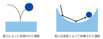 図2 重力によって束縛される量子状態のアナロジーと遠心加速度によって束縛される量子状態