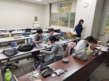 参加中高生は1日目にミュオン科学実験施設 (MUSE) ※3のビームラインの見学・実験準備を行いました。2日目にそれぞれ3つの中高生の提案実験を行い、予定通り必要なデータを収集できました。放射線管理区域内での検出器設置等の準備は放射線業務従事者登録をしている大学生・大学院生スタッフによって行われ、中高生は施設内の会議室から遠隔でデータ収集の準備を行いました。