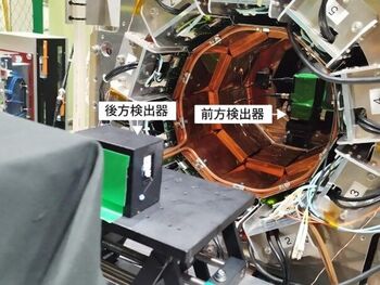 ビームライン上に前方検出器と後方検出器を並べて設置、 |