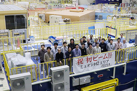 物質・生命科学実験施設の大強度ミュオンビームライン(Hライン)の調整運転において、Hラインを分岐・延長して建設した新たな実験エリア(H2エリア)へのミュオンビームの取り出しに初めて成功しました。また、このHラインの延長については2025年5月12日に行われた変更許可に係る施設検査の結果、5月13日付けで合格と認められました。今後H2エリアでは、Hラインが供する大強度ミュオンビームを減速・再加速することで指向性の高いミュオンビームを生成することを目指し、ミュオン加速装置の建設を進めていきます。将来的にはビームラインをさらに延長し、ミュオン異常磁気能率の精密測定による素粒子標準理論では説明できない物理現象の発見や、透過型ミュオン顕微鏡の開発による物質中の電磁場分布の可視化による産業応用などを目指していきます。