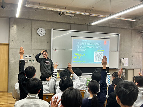 A special outreach class titled "The Mysteries of the Vast Universe, the Microscopic World, and Accelerators" was delivered on February 6 by Dr. KOBAYASHI Takashi, Director of the J-PARC Center.