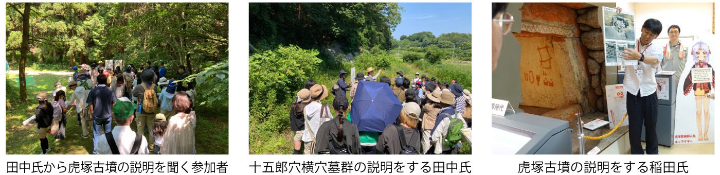 田中氏や稲田氏への質問がとても多く、参加者の虎塚古墳や十五郎穴横穴墓群への関心の高さが感じられる見学会となりました。