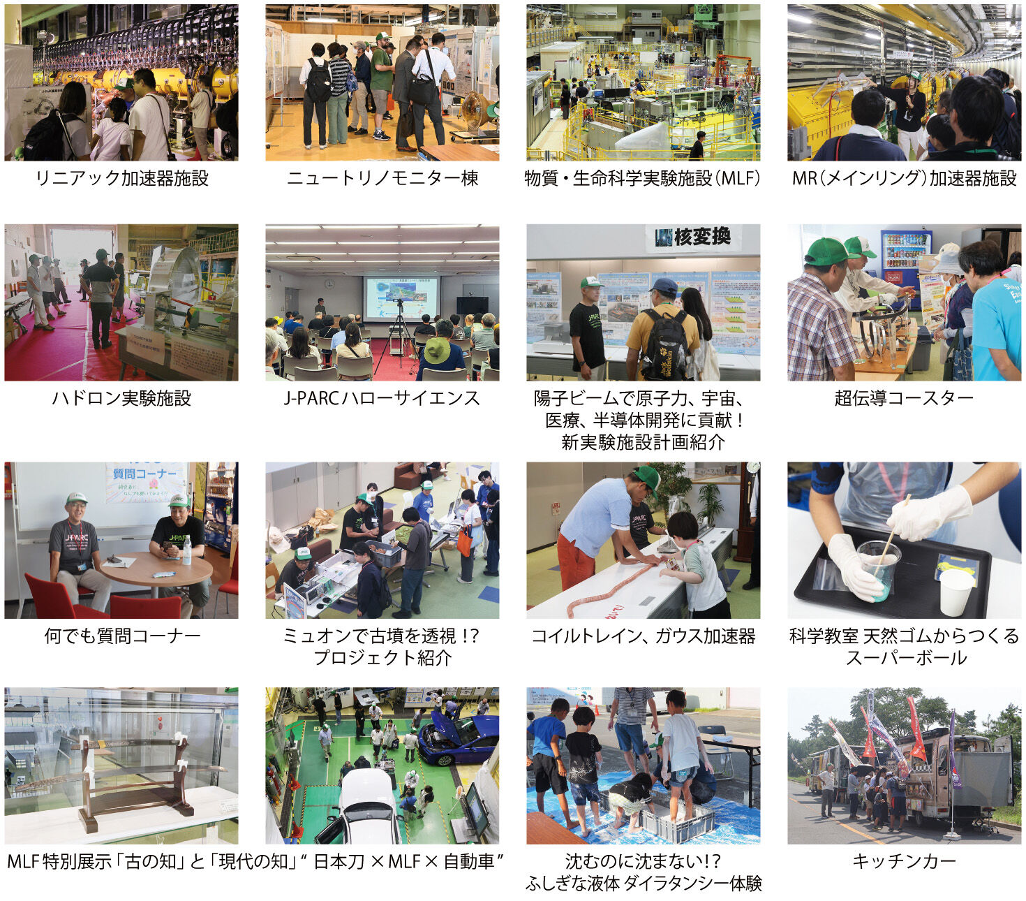 J-PARCエリアでは、加速器施設や実験施設を公開するとともに、J-PARCハローサイエンスを開催しました。また、MLF特別展示「『古の知』と『現代の知』“日本刀×MLF×自動車”」を始め、多くの展示・工作コーナーなどを設けました。
